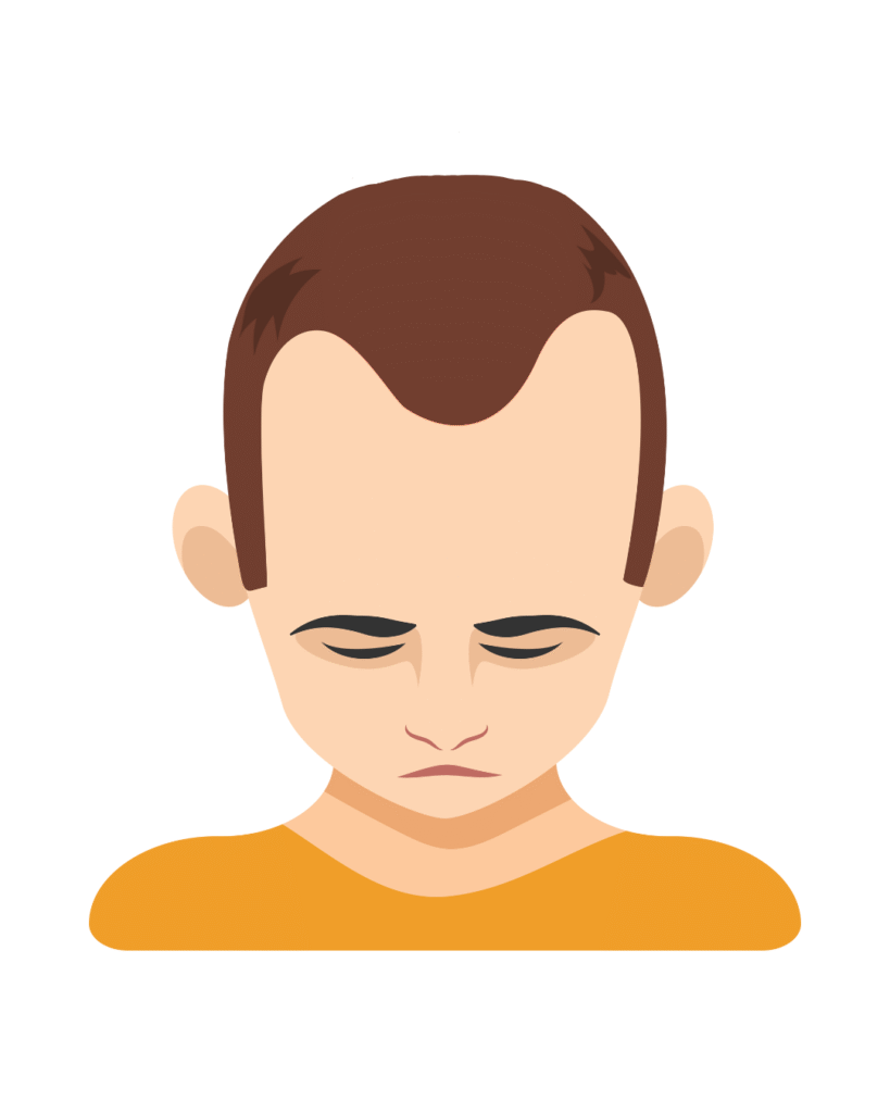 Steg 1: Nästan omärkligt håravfall, hårfästet är oförändrat.