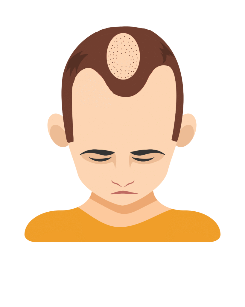 Steg 5: Omfattande håravfall, men hårremsor finns kvar.