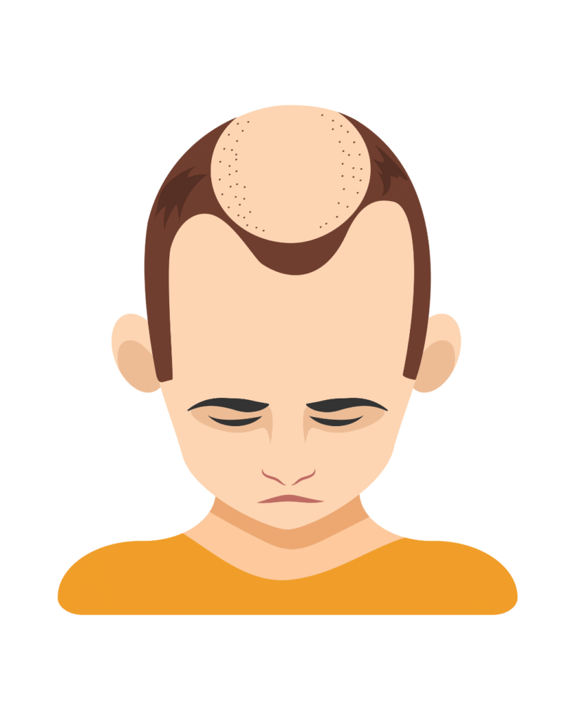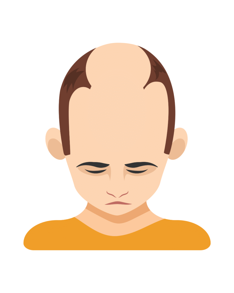 Steg 7: Det mest avancerade håravfallet, mycket begränsat hår kvar.